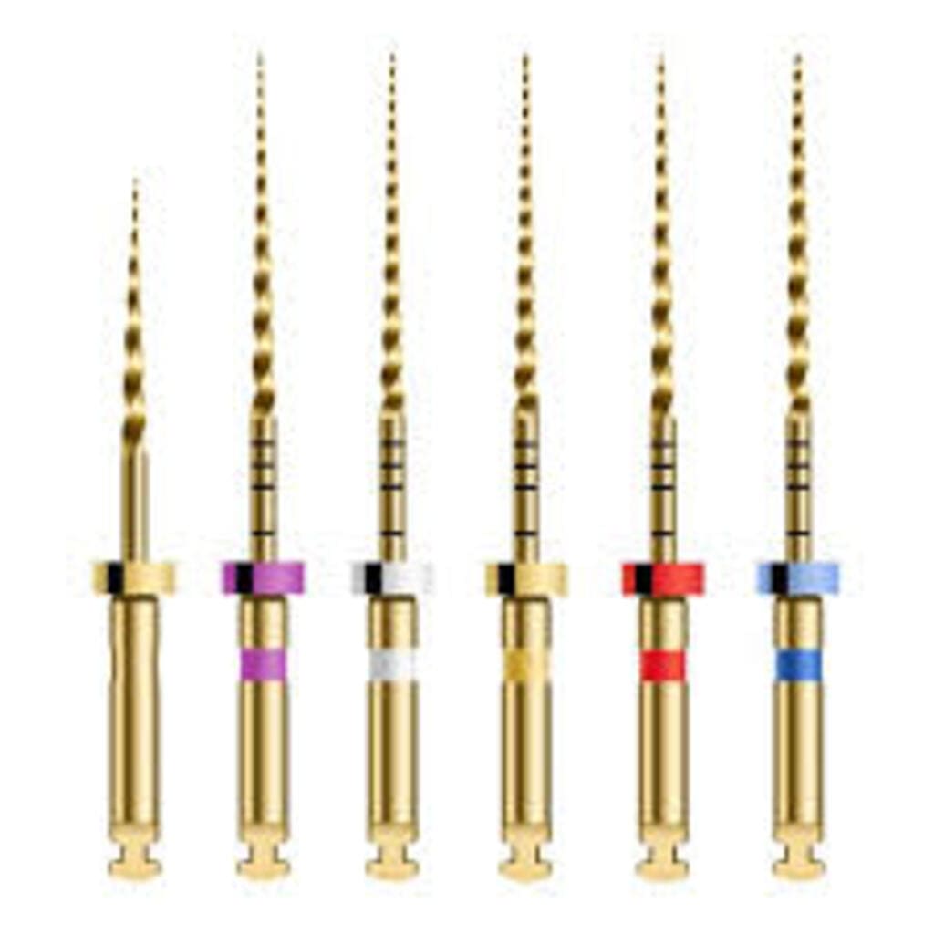 • پوشش طلایی (Gold Treatment): فرآیند ویژه اعمال پوشش طلا بر روی آلیاژ نیکل-تیتانیوم (NiTi) باعث می‌شود فایل انعطاف‌پذیری بیشتری در تمامی طول خود داشته باشد و در مقایسه با نسل قدیمی‌تر (ProTaper Universal) تا ۳۰۰٪ مقاومت بیشتر در برابر خستگی چرخشی نشان دهد. این یعنی ایمنی بالاتر و کاهش چشمگیر خطر شکستگی.